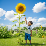 夏休みの初めに蒔いたひまわりの種が、ついに大きな花を咲かせた。小さな種から芽が出...