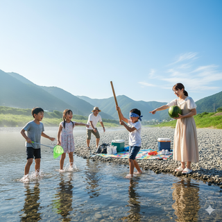 今日は朝から家族全員で車に乗り込み、郊外の川へ遊びに行った。まだ太陽が高く昇りきる前の時間帯で、空気はひんやりしていたが、川辺に近づくと蝉の声が響き、夏らしい雰囲気に包まれた。川の水は透明で、足を入れると想像以上に冷たく、最初は思わず声を上げてしまった。けれど少し経つとその冷たさが心地よく、暑さを忘れさせてくれる。弟は虫取り網を持ってはしゃぎ、父は荷物を広げてレジャーシートを敷いていた。母はさっそく大きなスイカを取り出し、スイカ割りの準備をしてくれた。目隠しをした弟が棒を持って挑戦し、家族の「もっと右!」「そこそこ!」という声に導かれて一歩踏み出す。そして思い切り振り下ろした棒は、見事にスイカの真ん中に命中!その瞬間、歓声と拍手が川辺に響いた。甘くて冷たいスイカを川の水で冷やし、みんなでかぶりついたときの美味しさは格別だった。自然の中で過ごす家族の時間は、ただ遊ぶだけではなく、心を解放してくれる特別なものだと改めて感じた一日だった。
